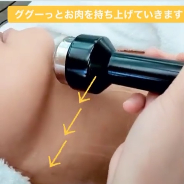 首のエステも◎ 首のエステも行うと、普段のエステより更にフェイスラインがスッキリ!お肉がググーっと上に持ち上がり気持ちよさそう… ぜひお試しください♪