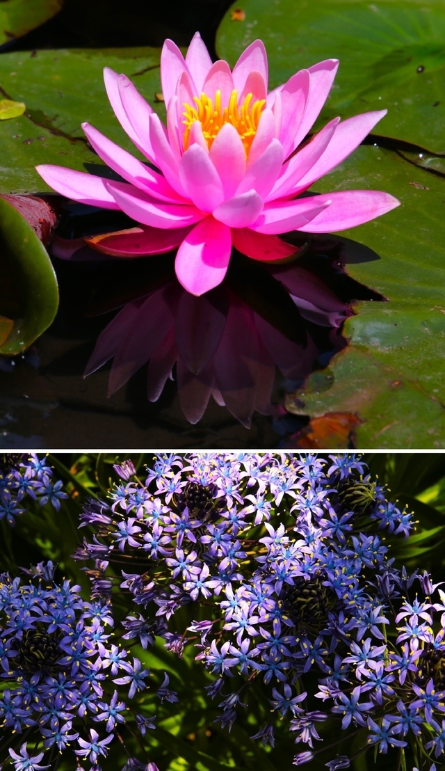 黄菖蒲は花盛りを過ぎて、スイレンがだいぶ咲いていました。あまり見かけない「オオツルボ」が満開でした。「こどもの日」ということもあり、普段よりは駐車場が混んでいました。