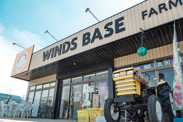 一見、飲食店やカフェのようなカッコイイ農産物直売所「WINDS BASE」。神栖市はピーマンの生産量が日本一で、昔からメロンやスイカも多く作られている地域。地元の人々に自分達の作った農作物や水産物など、神栖近郊の厳選した商品を味わって貰おうと、地元農家達が開いた店です。どうぞ、心ゆくまでご堪能ください。
