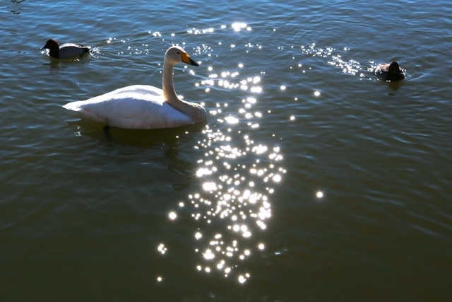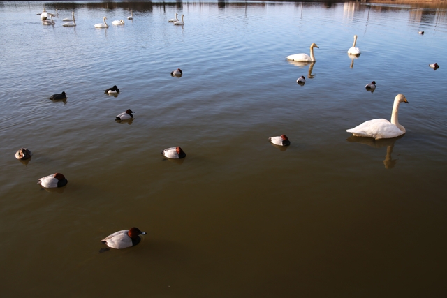 冬の風物詩となった白鳥が飛来しはじめています、これからますます数が増えて水鳥とともににぎやかになるでしょう。一周してもそんなに時間がかかりませんので、散歩コースに最適ですね。