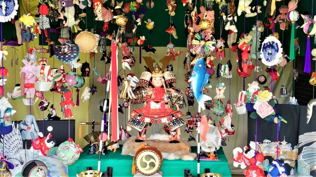 那珂市曲がり屋で「2023端午の節句つるしかざり展」が開催されていました。5/7まで。庭には鯉のぼりが泳いでいて「こどもの日」らしいイベントでした。