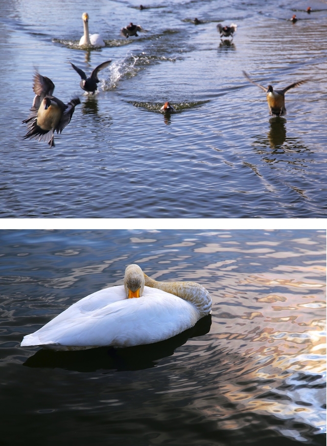白鳥が見たくなって行ってきました。白鳥、水鳥(カモ、オオバン、カイツブリなど)、鵜、シラサギなど沢山の鳥が水辺にいます。 人が近づくと餌をもらえると思って、急いで飛んできます。 平日なので人影もまばらで、池の周りをのんびりと散策できます。寒いので防寒は怠りなく。。