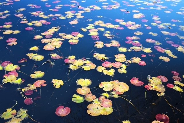 夏を賑わした睡蓮の葉が、朽ち果てる前に見せてくれるつかの間の彩り。慌ただしい年の瀬に、ちょっと息抜きに散歩するのに良いところです。