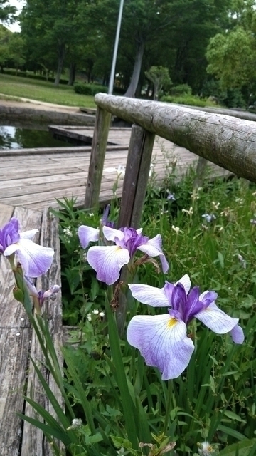 運動不足解消に愛犬とサッカーグランドでボール遊びと軽いジョギングをしました、紫陽花と菖蒲少し咲き始めました。