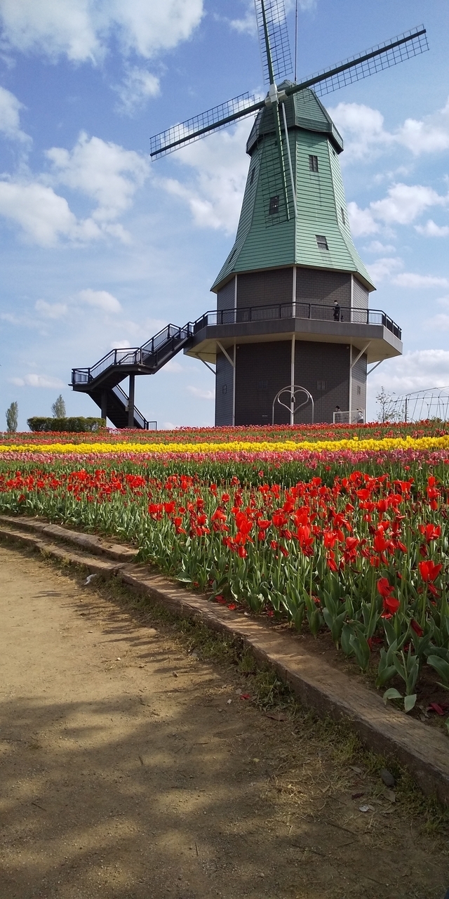 公園がすごく広くて子供を連れてのびのびと遊べます、風車の周りは散歩にも最適ですし花壇には季節の花がきれいに咲いています。風車に登ってからの眺めも最高です。