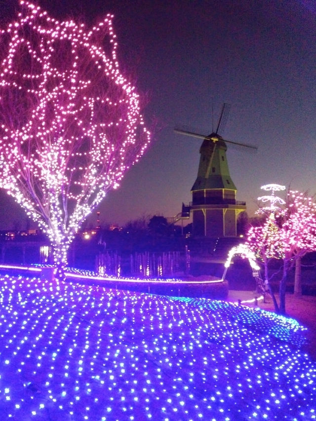 冬に行われるイルミネーションがとてもきれい。 駐車場も無料だが近いところは混んでいて止められないこともあるので注意。