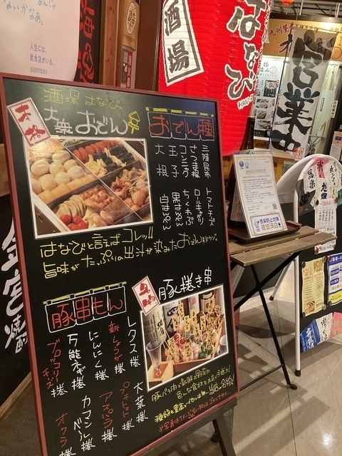 デイズタウン地下1階にある『酒場はなび』は、本格おでんと名物の野菜豚巻き串で、こだわりのお酒を気軽に愉しめる和風居酒屋。羅臼昆布と干し貝柱など魚介を中心に丁寧にひいた黄金色のダシのおでんは絶品!また、季節ごとに出荷される全国の地酒は常時20種以上!あなたのお気に入りを見つけてください!