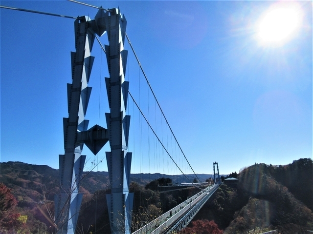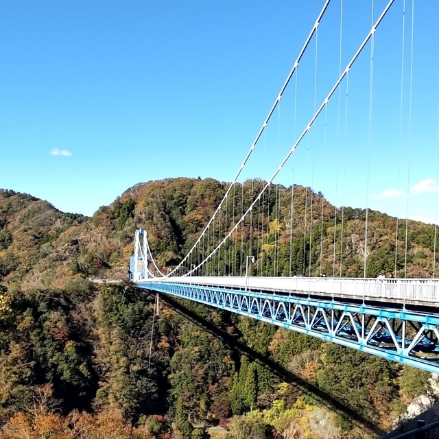 以前、紅葉の時期に訪れました。 大吊橋は本当に高く、長くて大迫力でした。 また、紅葉がとても綺麗で橋を渡った後に、その周辺を散策するととても気持ちよかったです。 バンジージャンプもできるそうなので、スリリングな体験をしてみたい方にもオススメです。