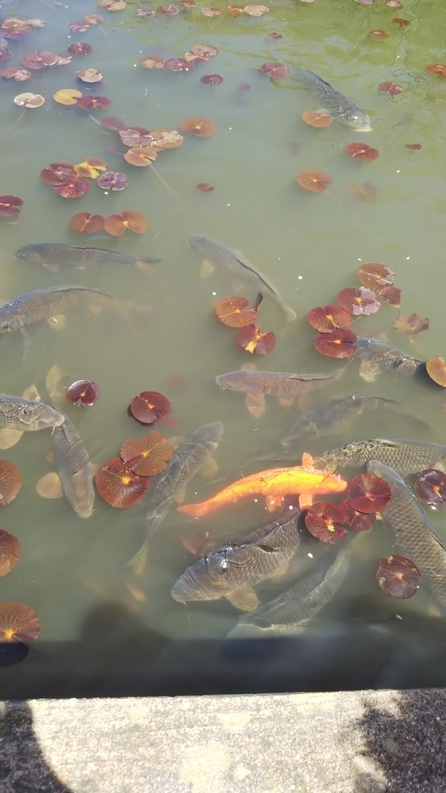 子供たちと嫁さんと姪っ子で鯉にエサをあげに行きました。 こちらは水鳥なんかは少なくて鯉がたくさんいます。 一匹だけ亀がいて近くにパンを投げるも鯉に横取りされてしまって亀にあげるのが大変でしたよ(笑)