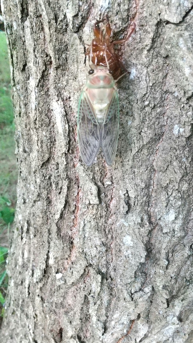 早朝から子供のお供でカブトムシ、クワガタ取りにきました。 セミの羽化を初めて見ましたキレイですね~ クワガタも取れて子供も満足して良かったです。