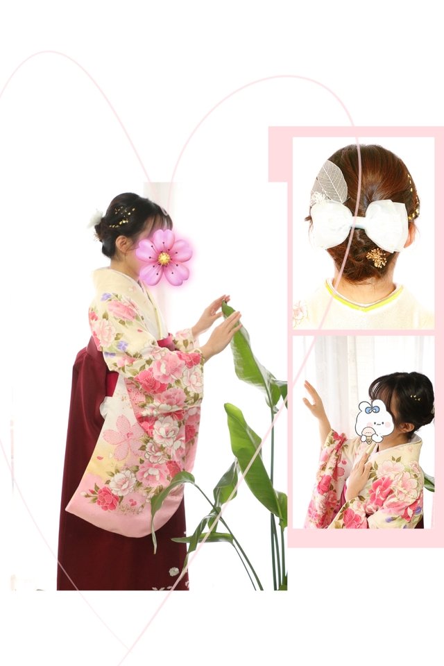 とっても可愛いです振袖、はかま、髪飾り、撮影などフルサービスをしてくれました。しかも自宅でのサービスの為娘が全過程気持ちよく、大満足です!本当にありがとうございました