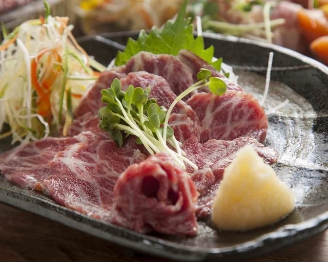 人気の馬刺し。脂が少なく、赤身が多いので高たんぱく・低カロリー。健康志向が強いお客様は必見!