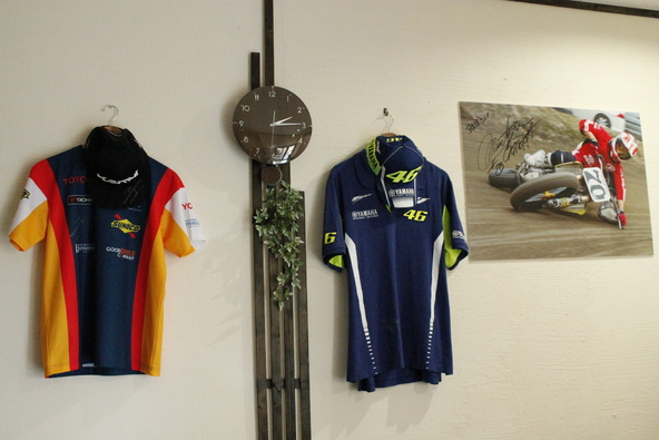 一瞬「何のお店!?」とドキドキしてしまうかも…? すまほスタッフの『モータースポーツ愛』がとめどなくあふれる一角です♪ ファンにはたまらない、ライダーのサイン入りグッズも! 心が躍る品々ばかりです(>u<)v★