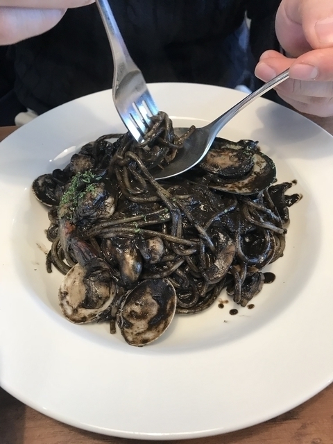 美味しいので2回目の来店です。 今回はイカスミパスタをいただきました。パスタは+100円の生パスタに変更しました。家庭ではなかなか食べられないイカスミ。とてもいい香りで、もっちりとした生パスタにソースが絡んで美味しいです。ここのパスタを食べたらファミレスのパスタは食べられません!