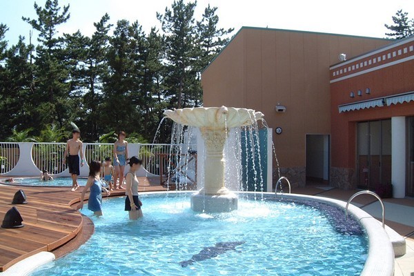 みんなで水着で天然温泉を楽しめる開放的なオープンスペース。レンタルの水着もございます。お気軽にご利用ください。【開放期間】GW~10月末日まで