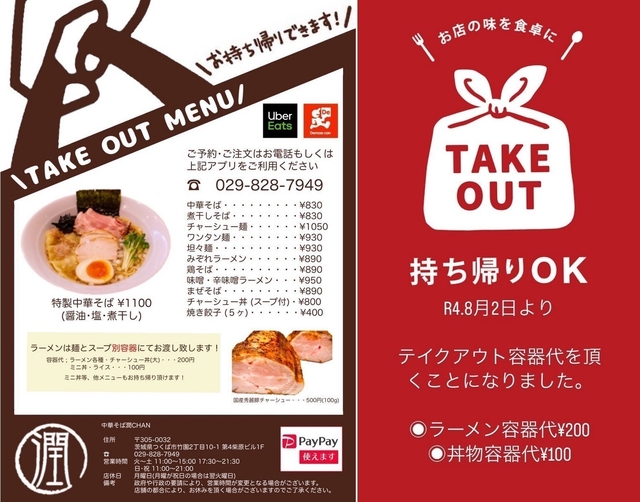 令和4年8月2日より、テイクアウト容器代を頂くことになりました。