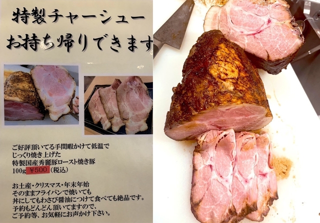 ・国産秀麗豚チャーシュー…100g500円