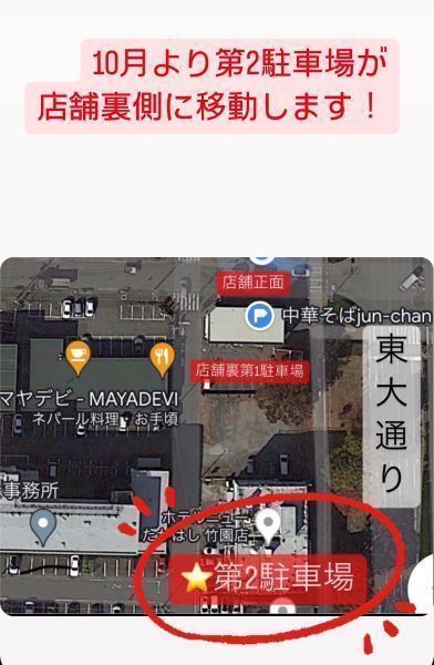10月より第2駐車場が店舗裏に移動します!