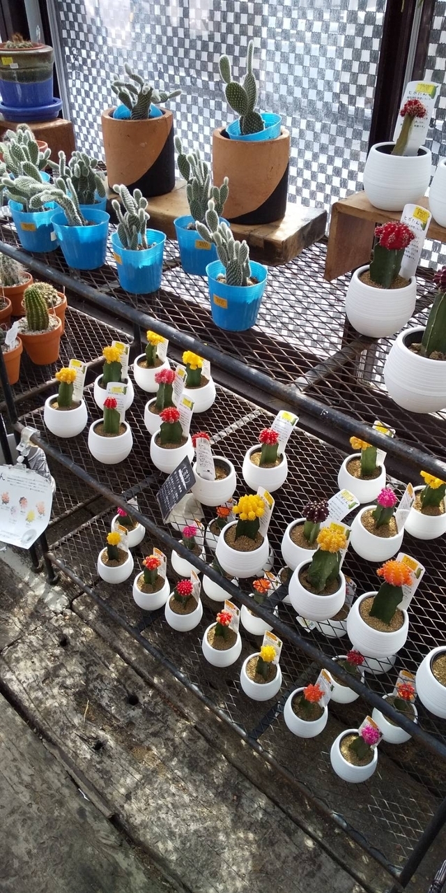 サボテンも卓上サイズなどたくさんありました。色が珍しいサボテンや、水をやれば髪が生えたようになる懐かしい物も販売されていて楽しめます。