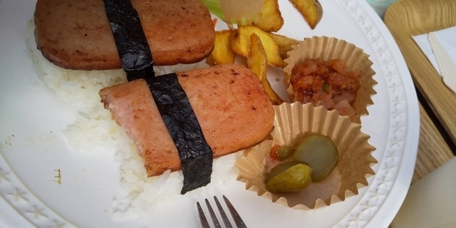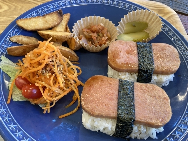 店内のランチができる店でスパムプレートを注文。辛くはなく、子供でも食べれるスパムでした。ランチのあとは雑貨やアクセサリーなどを見て楽しめるお店で楽しいです。