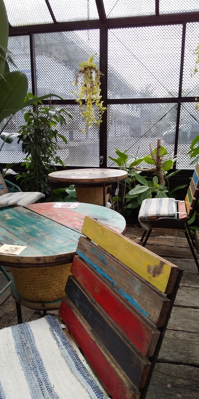 平日の昼に初訪問。レインボーカフェでランチ。ランチは店内と温室コーナーがあり、温室コーナーでは観葉植物も販売していました。温室は4テーブルで、他のお客さんとも距離が取れました。