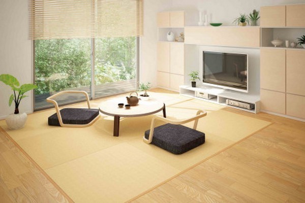 フローリングが中心の現代の住宅に日本人のなじみのある畳を取り入れたライフスタイル。フローリングに置くだけで簡単。リビングや洋間に快適な空間を。家族団らんできる場所をつくる現代的な畳の使い方のご提案です。