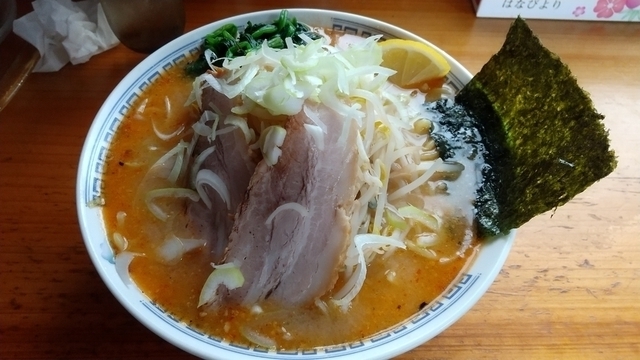 今は昼だけの営業みたいです、隣の焼肉屋さんの駐車場へ車を停めます。 この前食べたラーメンが美味しかったので今回は濃厚味噌ラーメン900円を大盛りで(100円) 大量のモヤシとネギ、チャーシュー二枚、海苔、青菜、レモン。 モヤシは大量だしちょっと変色した部分もあって食欲が、、、 チャーシューは以前同様美味しかったです、レモンも途中で絞るとさっぱり食べれました。 帰り際に後客さんが頼んでいた濃厚味噌ラーメンには肉味噌が、大盛りだと付かないのか忘れなのか分かりませんがね。他サイトのクチコミではコーンも乗ってました。 正直、この日食べた内容ではとても1000円の価値はないですね。