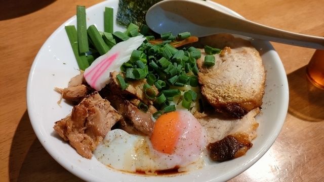土曜日の夕方に連れと訪問、席はけっこう埋っていた。全部乗せ風のモグそばと、ゆず塩そばを2人でシェアしながら食べました。どちらも美味しかった。卓上のアイテムでいろいろ味変して、〆の追い飯まで美味しくいただきました。