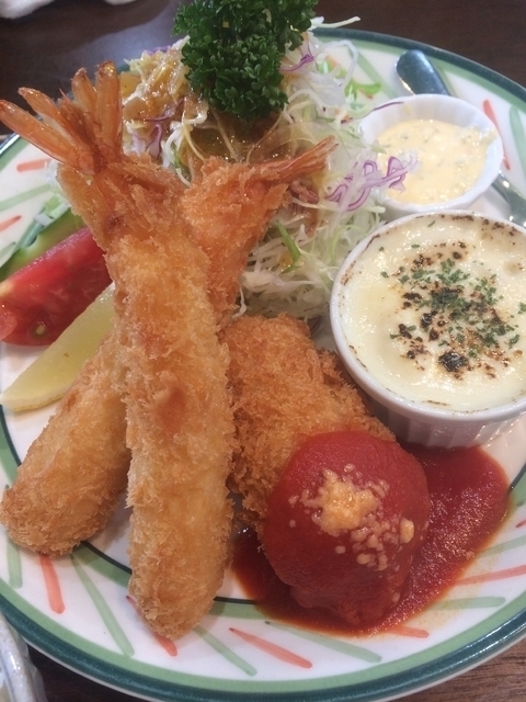 高津に移転してからの初訪問、 日替わりランチの中から、 海老フライとカニクリームコロッケ御膳をいただきました。 エビプリカニトロ で グッド! ソースを付けるも良し自家製タルタルをつけるも良し、 思わずご飯をおかわりしてしまいました。 ミニグラタンもチーズが濃厚で美味しく 至福のひとときが過ごせました。