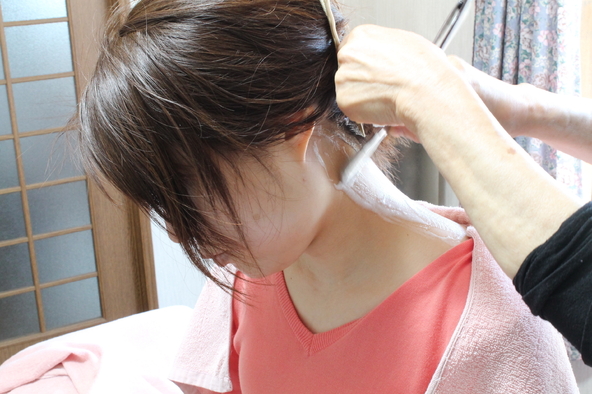 最後はベットに座って、 襟足のシェービング! 自分では中々、お手入れが難しい場所も 美しい形に整えてくれます! 洗練された印象に早変わり☆