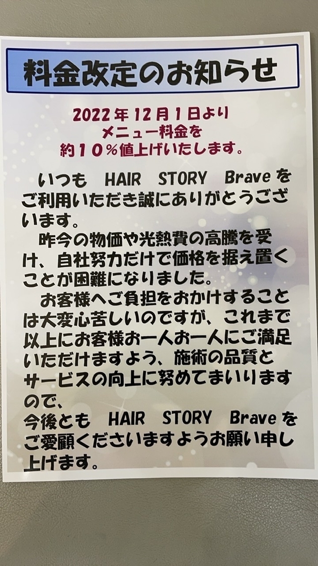 価格改定のお知らせ