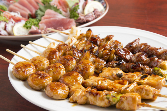 写真は焼き鳥盛り合わせ3人分一例。タレ味と塩味を用意しています。