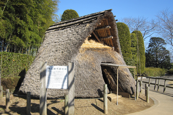 縄文時代の住まい「竪穴式住居」が復元されています。