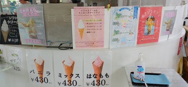 公方公園の《桃まつり》最終日に家族9人で訪れました 桃と桜のコラボで心が癒されました お店で《花ももとバニラのミックスソフトクリーム》を食べとても満足しました