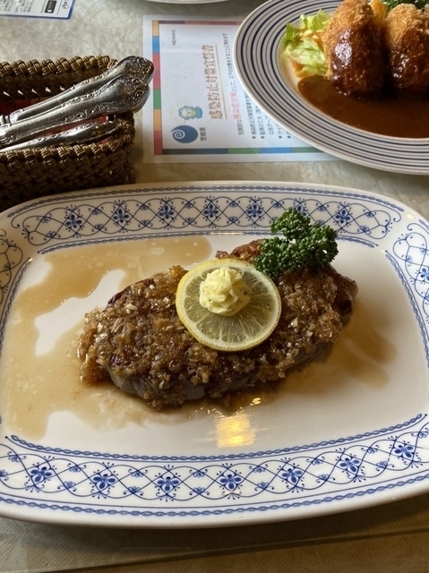 いつもはランチのピラフセットかパスタセットが多いですが 今回はステーキと蟹クリームコロッケをいただきました とっても美味しかった