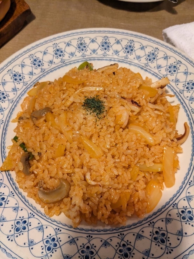 土曜日の夜にイカやエビのピラフを注文。 注文してからの時間も待ちすぎず、出来たての料理がでてきました。歴代で上位に間違いなく入る美味しさでした。