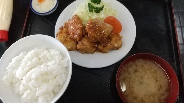 平日のお昼に来店しました。ちょうど昼時だったので満席でしたが、回転がよいのでそれほど待たずに座れました。日替り定食のチキン南蛮定食770円を注文しましたが、すぐに出てきました。ちなみに、隣の席の刺身定食はもっと早かったです。 ご飯が普通でも盛りが良く、チキン南蛮もボリュームがあり、お腹一杯になりました。 店員のおばちゃんも元気があって感じも良く、気分の良いお昼になりました。 写真は撮り忘れたので、次回撮ろうと思います。