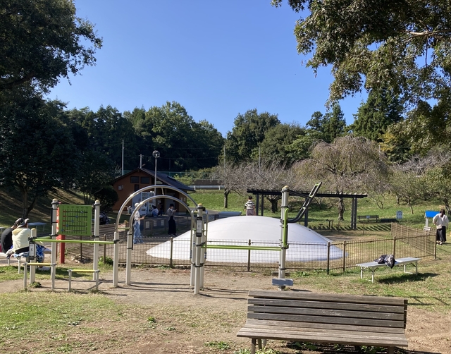 遊具が大きいので、小学生も楽しめます。白いトランポリンの遊具もあり、いつも混み合っている印象でしたが、この日は空いていました。丘の上に、室内の休憩場所(トイレや授乳室)もあり、ありがたいです。