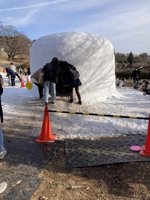 2/1〜2の雪まつりに行きました。友好都市「秋田県横手市」にちなみ、鎌倉が出現しました。鎌倉と写真を撮ったり中に入ったりできましたが、長蛇の列でとても混んでいました。キッチンカーも数台来ており、賑わっていました。