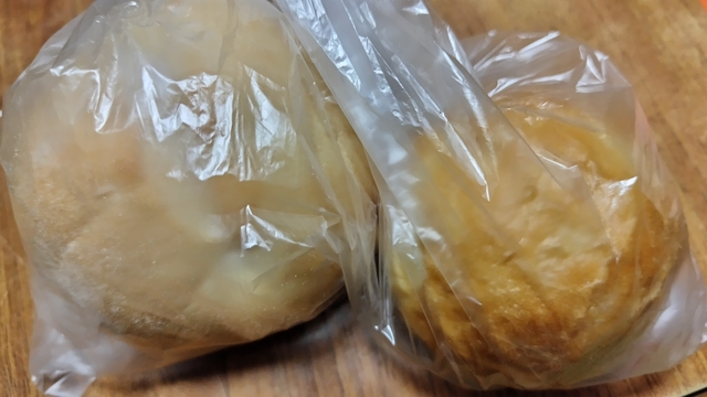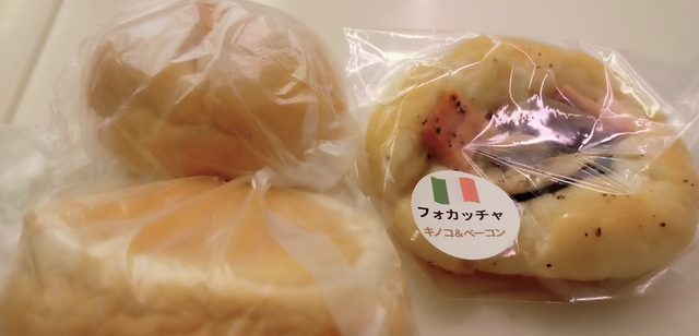 「水曜日はパンの日」ということで、あんドーナツ、欧風カレーパン、チーズ&チーズの3種類のパンを購入しました。あんドーナツとカレーパンは表面がカリッとしていて、中の生地はモチッとしていました。あんドーナツのあんは粒あんで、カレーパンは具材が溶け込んだかんじで、ほどよい辛さでした。チーズ&チーズは中にクリームチーズがはいっていました。どれもおいしくいただきました。 (各190円)