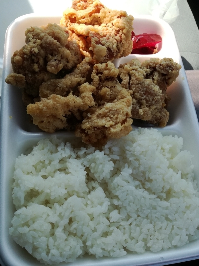 所用を済ませ昼飯に伺って見ました。唐揚げ弁当を購入、香ばしいにおいに負けてしまい車の中でむしゃぶりついてしまいました。少し濃い味つけかなと思いましたが御飯のおかずにはちょうど良いかな。外はカリッと肉はジューシーで大きな唐揚げも嬉しい満足の弁当でした。