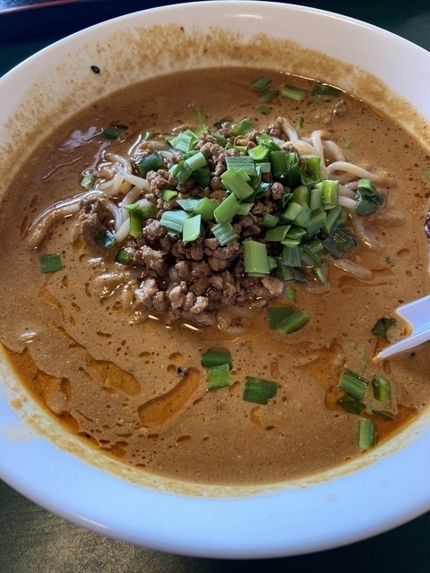 ここの坦々麺がうまい!ピーナッツのような濃厚なスープでクセになる!量も多くて相変わらずコスパ最強です!