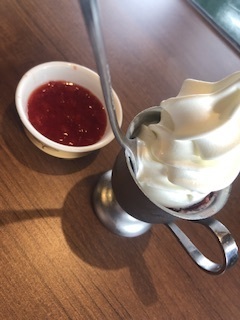 用事がてらお昼過ぎに来店。ちょうど空き始めたのかまたずに着席できました。ソフトクリームを注文。ミルク感が濃厚なソフトクリームと甘酸っぱいイチゴソースでした。
