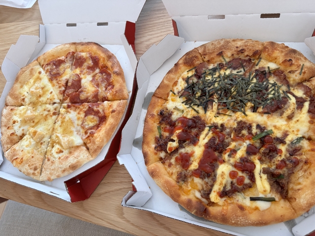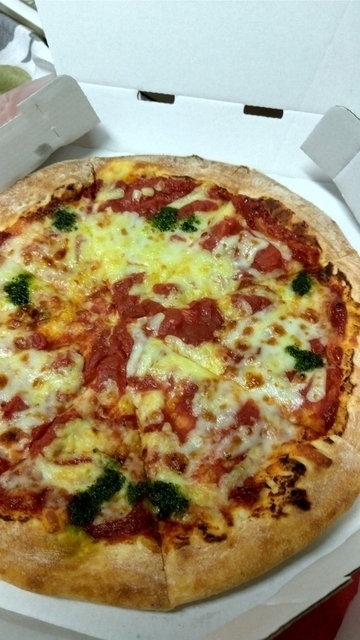 休日のお昼に持ち帰りで注文しました。 持ち帰りは半額とのことで、かなりのお得感・満足感が得られます。 ピザは、特に生地がモチモチしているのに、重くなくて、具材とのバランスも良くておいしいです。 利用する際は持ち帰り1本になりそうです。