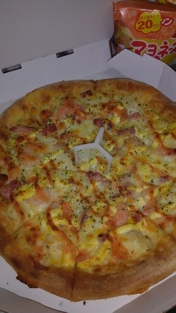 お正月の帰省に甥っ子からピザのリクエストがあり、ベーコンマッシュルームとテリマヨチキンを注文しました、チーズとテリマヨの組み合わせが美味しい!