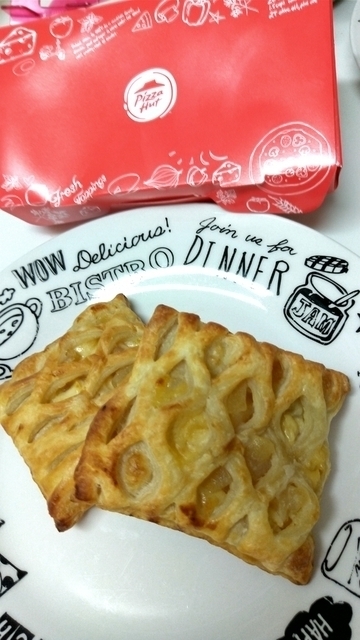 ハットの日にマルゲリータとアップルパイとジュースをスライスポイントでお得に購入しました、アップルパイが意外と本格的でとても美味しかったです!