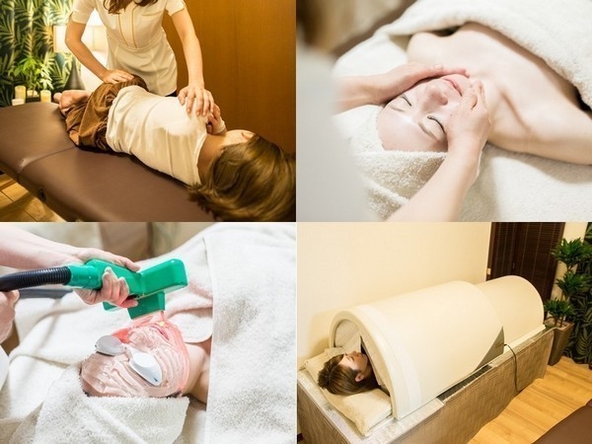 《リンパマッサージ・リンパドレナージュ》 ◆全身リンパデトックスケア70分・・・6,600円(税込) 《フェイシャルケア》 ◆ベーシックフェイシャルコース50分・・・4,400円(税込) ◆小顔矯正ストレッチフェイシャルコース60分・・・5,500円(税込) 《脱毛》 ◆両脇脱毛1回・・・5,500円(税込) ◆顔全体脱毛+ベーシックフェイシャル・・・13,200円(税込) 《その他》 ◆毒素排出ドーム30分(ミネラルウォーター付)・・・2,200円 ※その他メニュー有り。 ※詳しくは、お気軽に店舗へお問合せください♪