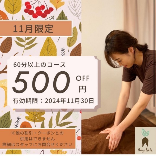 ・60分以上のコースご利用で500円割引