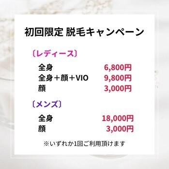 レディース脱毛・メンズ脱毛・キッズ脱毛メニューございます!