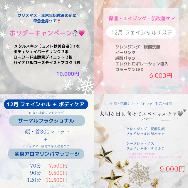 クリスマスや年末年始休み・忘年会に向けてホームケアホリデーキャンペーンではグルタチオン配合したミスト美容液やボディシェイプができるドリンクと置き換え食・美容液がたっぷり入ったモイストマスク入り♡